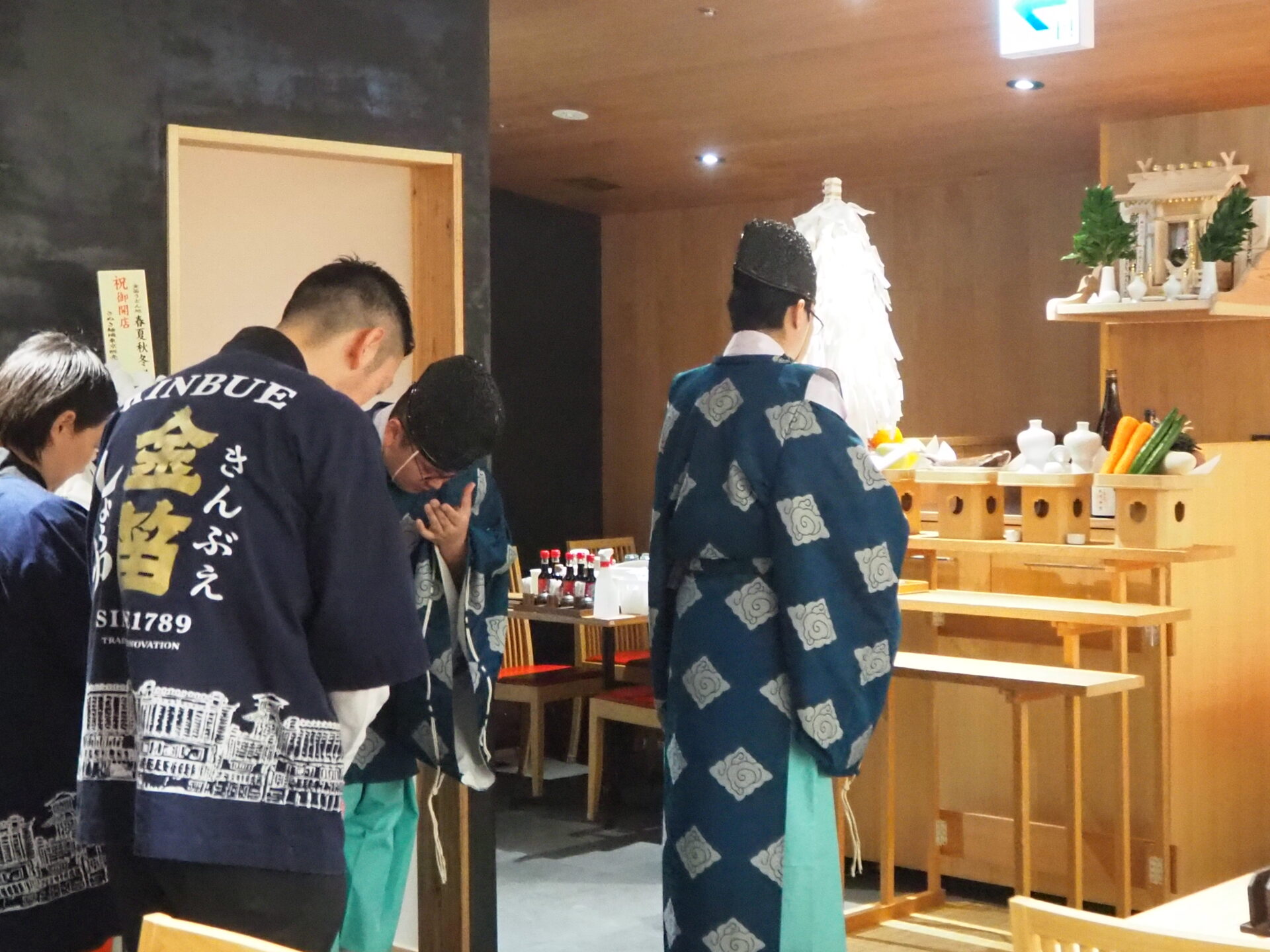 3/5川越氷川神社様に、丸広川越店別館4階に出店する笛木醤油うどん屋3号店『金笛うどん処 春夏秋冬』開店奉告祭ならびに店舗清祓いを執り行って頂きました。
