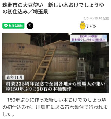 【プレスリリース】 能登復興支援 150年ぶり製作した新桶50石大桶 初仕込み 【石川県能登 珠洲市産丸大豆使用】