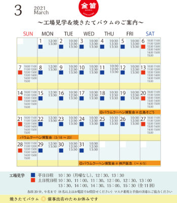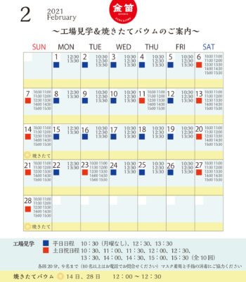 2月の工場見学&焼きたてバウムスケジュール